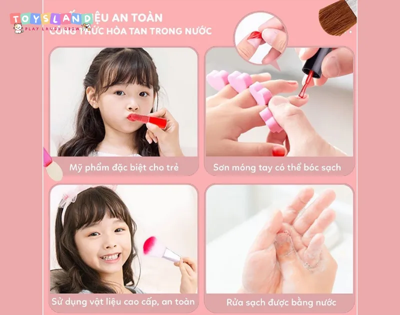 - Mua hàng tại các shop uy tín: Ba mẹ chỉ nên tin tưởng những địa chỉ có nguồn gốc rõ ràng và chứng nhận kiểm định chất lượng đầy đủ. Trong đó, Toysland là hệ thống cửa hàng chuyên cung cấp đồ chơi trang điểm chính hãng, cam kết mang đến những sản phẩm an toàn tuyệt đối và đa dạng mẫu mã cho bé yêu.