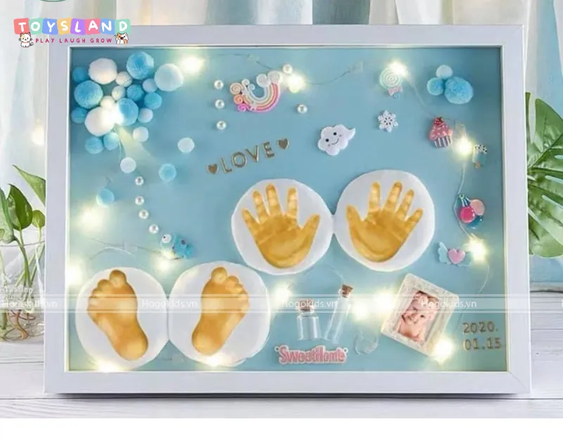 Nếu bạn muốn tìm một món quà mang đậm tính cá nhân và kỷ niệm, hãy chọn bộ in dấu tay chân. Bố mẹ có thể tự tay ghi lại khoảnh khắc đầy tháng của con bằng dấu vân tay xinh xắn. Đây chắc chắn là kỷ vật xúc động nhất mà bé sẽ trân trọng khi nhìn lại sau này.